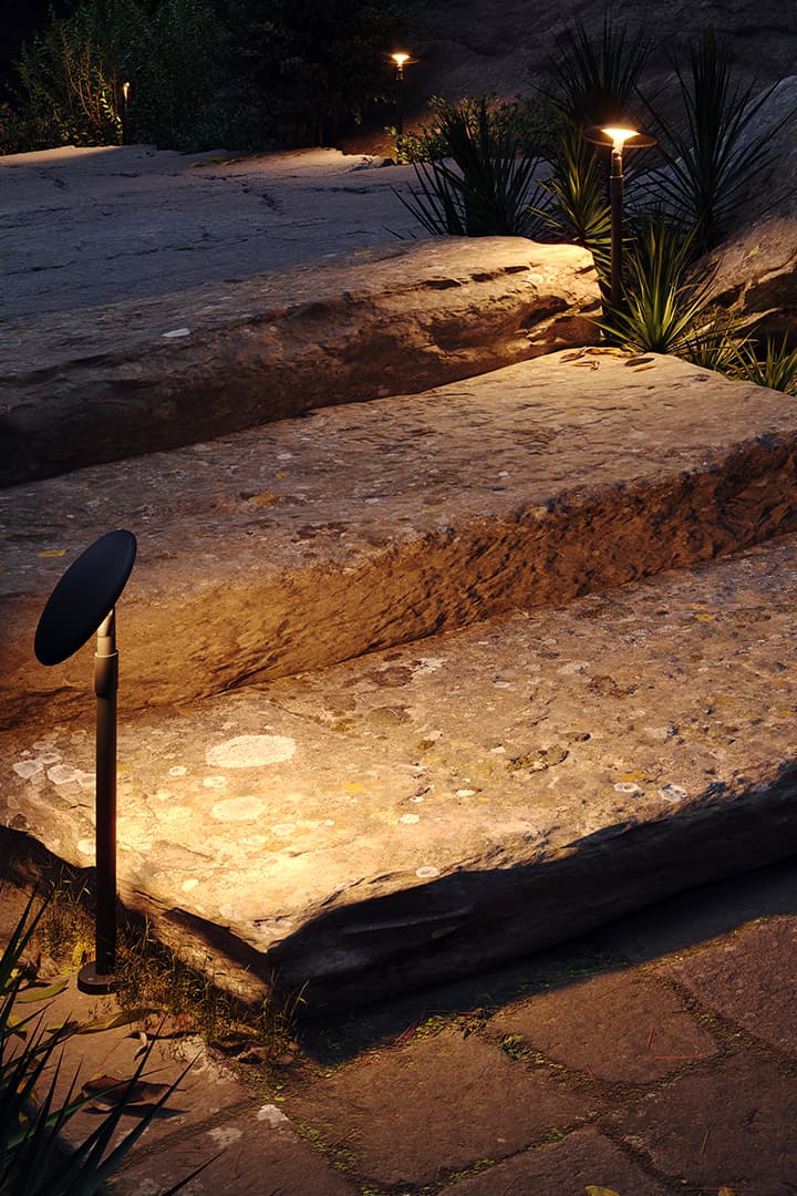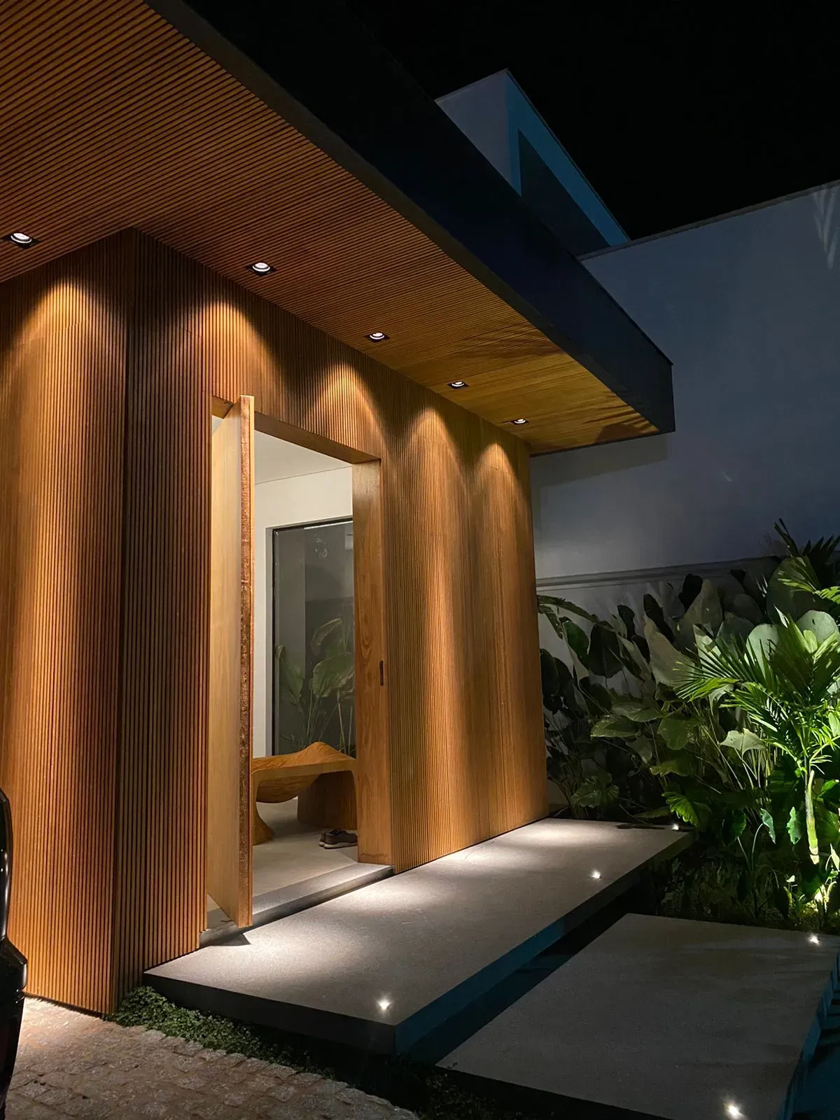 A conexão entre luz e natureza atinge um novo nível em 2025. Esses tons calorosos promovem um ambiente propício à contemplação, destacando a beleza natural dos espaços externos, enquanto a luz suave convida ao relaxamento e introspecção. A utilização de temperaturas de cor âmbar de 1800K da linha Nude é ideal para criar ambientes acolhedores e confortáveis nos projetos de paisagismo.