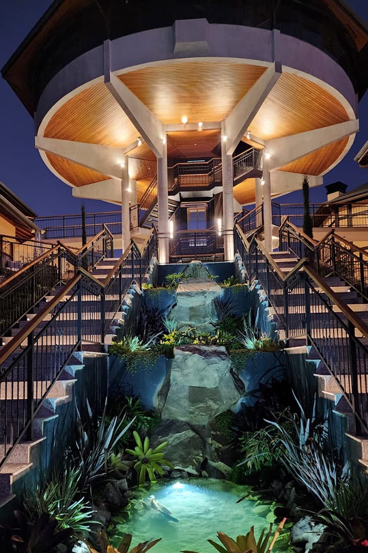 A iluminação do futuro se adapta às formas naturais, abandonando ângulos retos em favor de curvas suaves. A Interlight oferece opções com acessórios que promovem uma harmonia com a natureza, como luminárias Dark Sky (luz direcionada para baixo) e luminárias que podem ser fixadas em árvores, que criam um efeito downlight em paisagismos e caminhos noturnos. Esse design fluido não só embeleza, mas também otimiza a distribuição da luz, gerando ambientes acolhedores.
