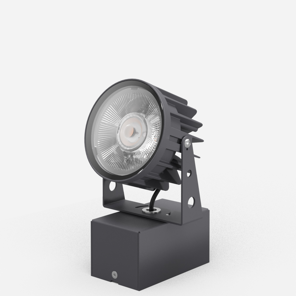 Corpo em alumínio injetado. Vidro temperado transparente. Lente em policarbotano alta transmitância. Pintura eletrostática a pó poliéster. Acabamento microtexturizado.