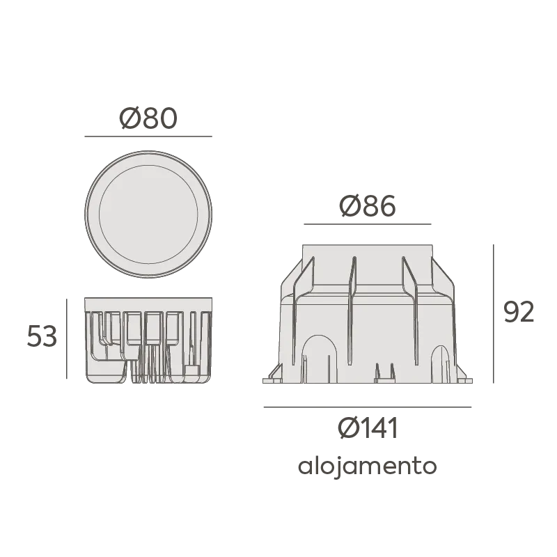 Nicho(piso) Ø86 x (base) 141 x (altura) 92mm mm