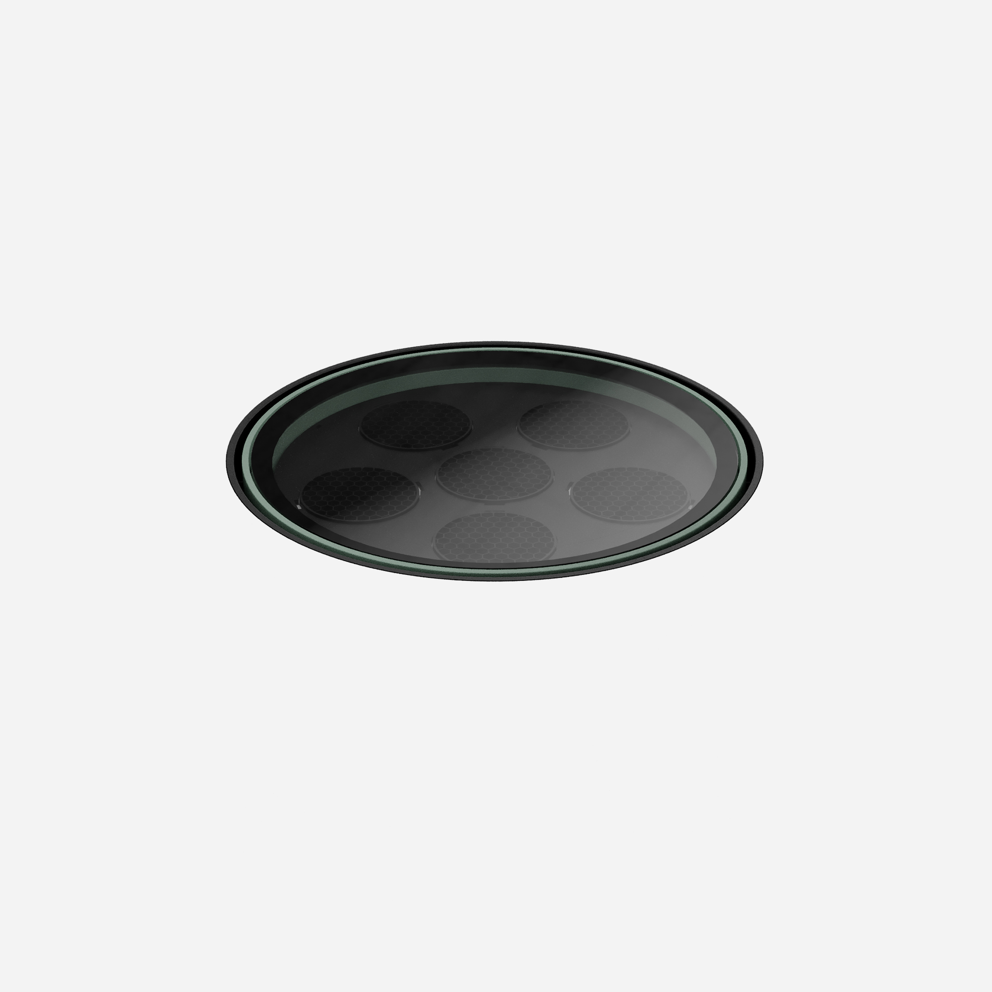 MaterialCorpo em alumínio injetado. Vidro temperado transparente. Suporte da lente policarbonato branco. Lente em pmma alta transmitância. Pintura eletrostática a pó poliéster. Acabamento microtexturizado.