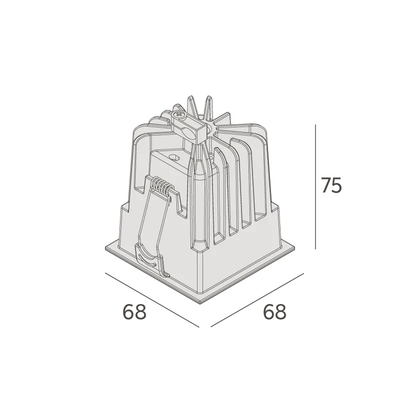 MaterialCorpo em alumínio injetado. Acabamento microtexturizado. Pintura eletrostática a pó poliéster. Refletor em policarbonato metalizado. Recuo em policarbonato. Molas em aço inox.