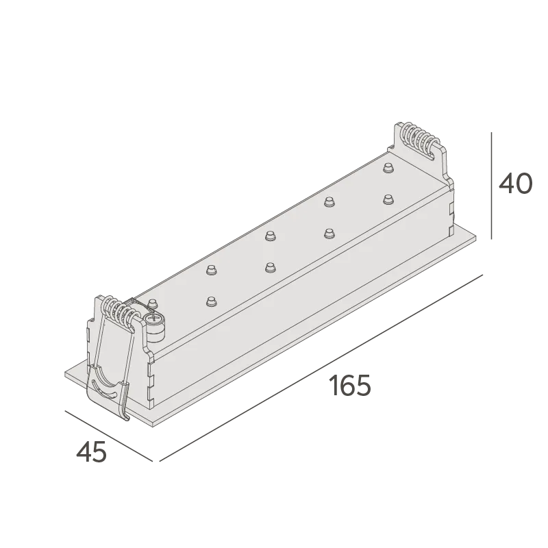 MaterialCorpo em alumínio injetado. Acabamento microtexturizado. Pintura eletrostática a pó poliéster. Refletor em policarbonato metalizado. Recuo em policarbonato. Molas em aço inox.