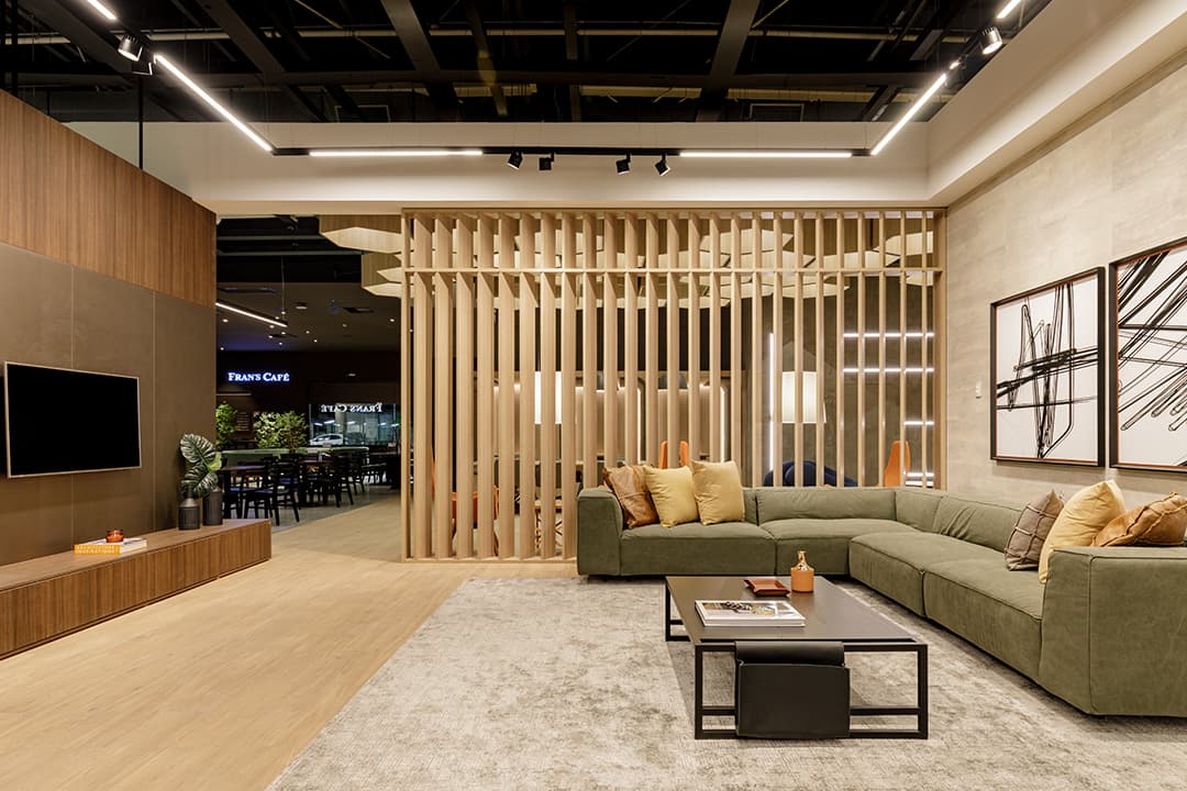 O projeto redefine a experiência de um espaço comercial ao integrar arte e design de forma intimista. O conceito central gira em torno da criação de um ambiente que estimula interações e descobertas. A iluminação artificial é fundamental neste projeto, ressaltando os volumes e as texturas dos materiais, criando uma atmosfera acolhedora e envolvente. À noite, os jogos de luz transformam o espaço, proporcionando uma nova percepção do ambiente e destacando a proposta única do estúdio.